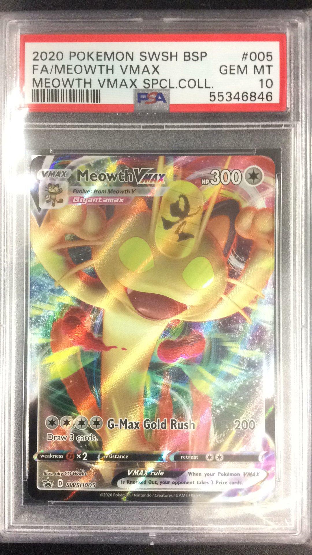 PSA 10 2020 Pokemon Swsh Black Star Promo 005 Full Art/Meowth Vmax