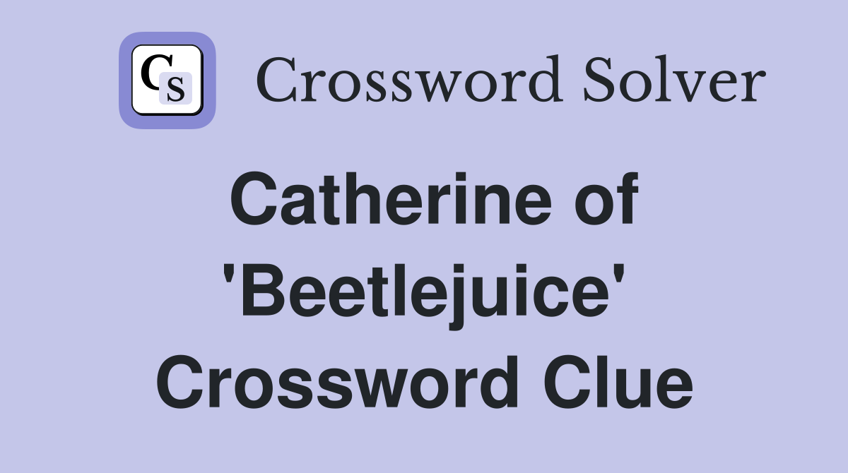 We found 40 solutions for 'beetlejuice' actress catherine. The crossword solver found 30 answers to beetlejuice actress catherine, 5 letters crossword clue. Here are the possible solutions for 'beetlejuice' actress catherine clue. The crossword clue 'beetlejuice' actress catherine with 5 letters was last seen on the may 16, 2023. If you're still struggling, we have the 'beetlejuice' actress catherine crossword.