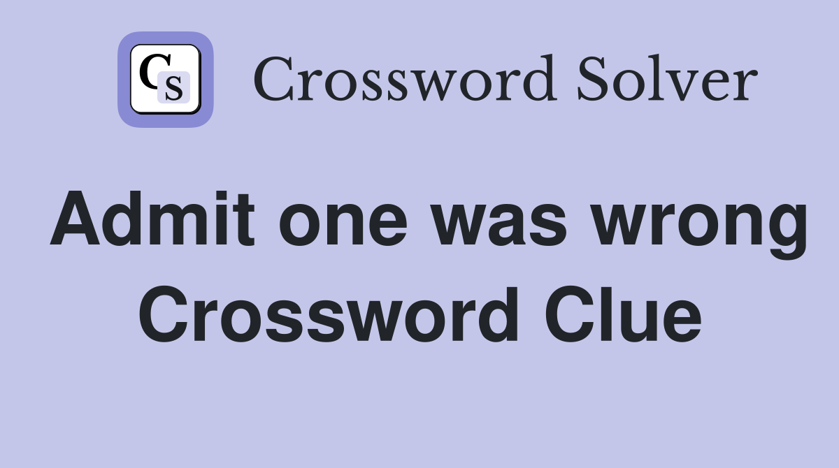 Here are the possible solutions for admit one was wrong clue. We’ve prepared a crossword clue titled “admit one was wrong” from the new york times crossword for you, find answer below! Here is the answer for the: If you need help with. July 7, 2024 answer of admit one was wrong clue in nyt crossword puzzle.