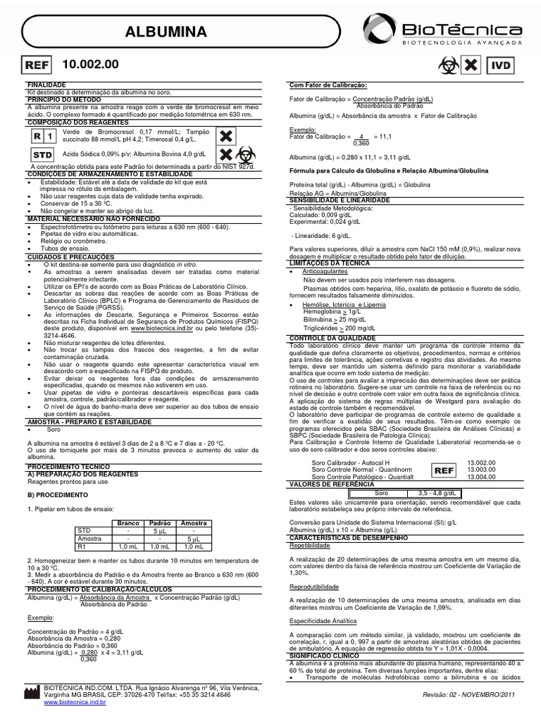 Albumina PDF Laboratórios Patologia clínica