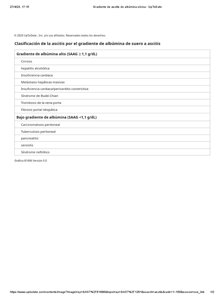 Gradiente de Ascitis de Albúmina Sérica UpToDate PDF