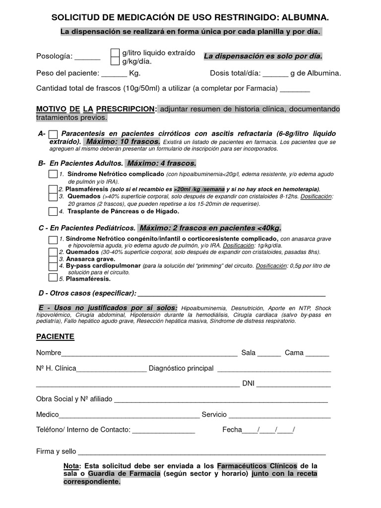 Formulario Uso de Albumina Humana en Adultos PDF