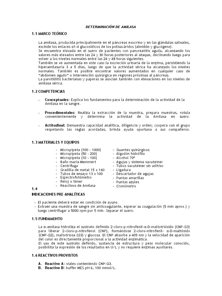 6 Determinación de Amilasa PDF Química Especialidades Medicas