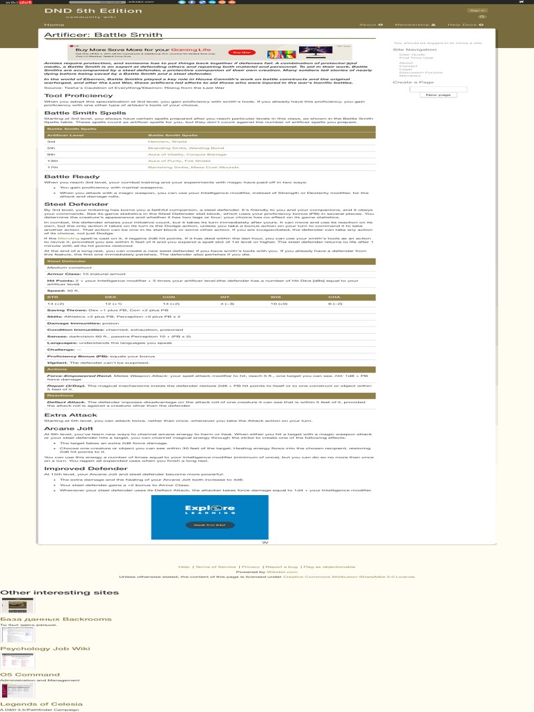 Artificer Specialist Battle Smith 5e — Caverns & Creatures