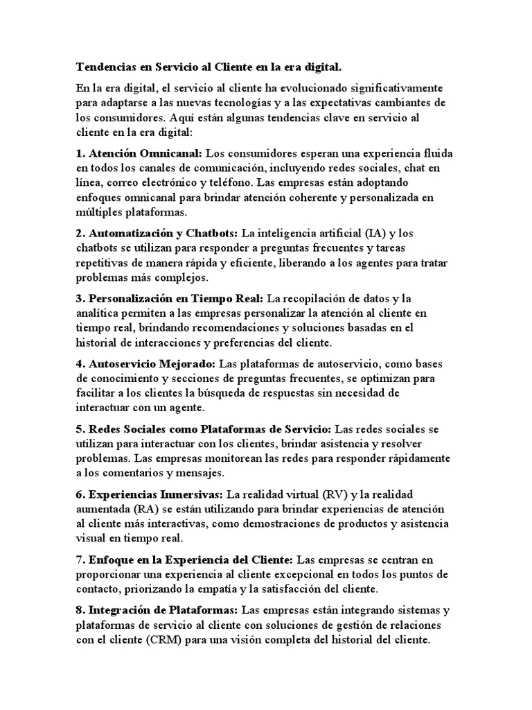 Tendencias en Servicio Al Cliente en La Era Digital PDF Servicio al