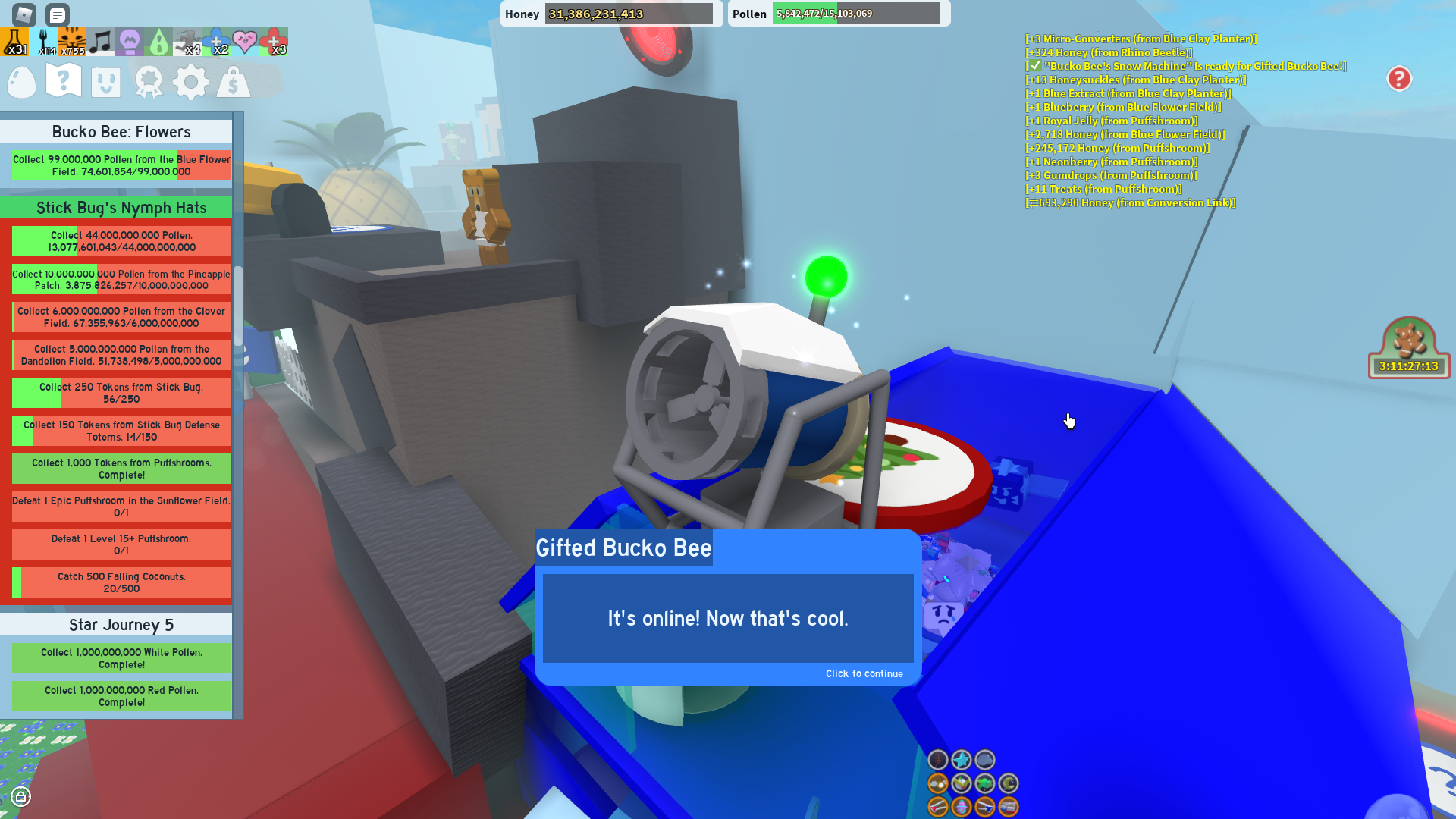 finished bucko bee's beesmas quest + stump grandmaster Fandom