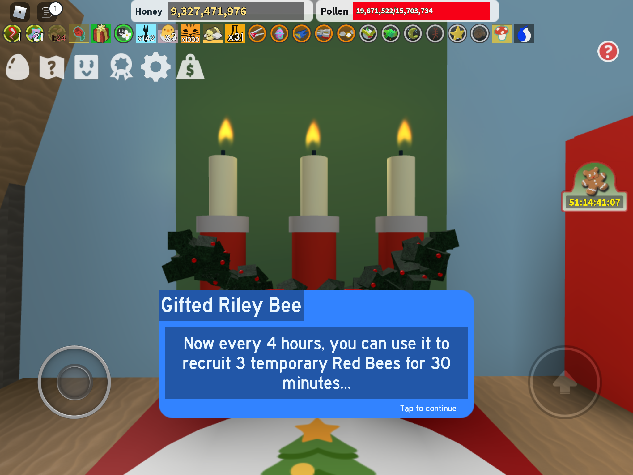It will grant bond to all your bees, and make them very happy! Now that the beesmas feast is ready, you may sample it once every 90 minutes. There is no cost for this first plot of virtual land. This beesmas is actually harder than the sticker beesmas, as some quest physically require you to be good at the game,..