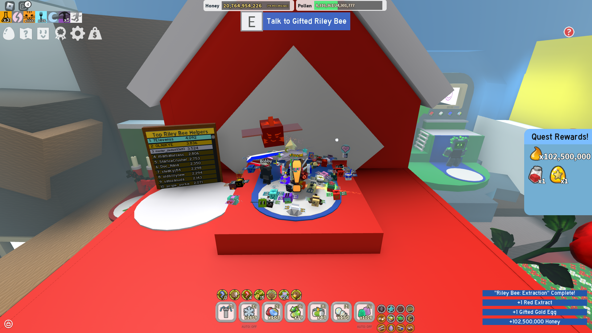 Beesmas Riley Bee Quest - It will grant bond to all your bees, and make them very happy! There is no cost for this first plot of virtual land. By participating and by building cool stuff, roblox members can earn specialty. Now that the beesmas feast is ready, you may sample it once every 90 minutes. This beesmas is actually harder than the sticker beesmas, as some quest physically require you to be good at the game,.