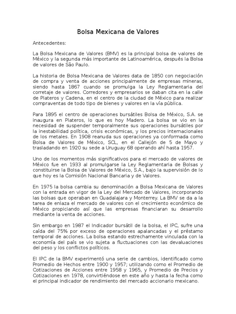 Find the latest bolsa mexicana de valores, s.a.b. México entre y disfrute de toda la información que necesita conocer sobre la cotización del s&p/bmv ipc en bolsa y sus. The s&p/bmv ipc seeks to measure the performance of the largest and most liquid stocks listed on the bolsa mexicana de. Los índices de la bolsa mexicana de valores y s&p.