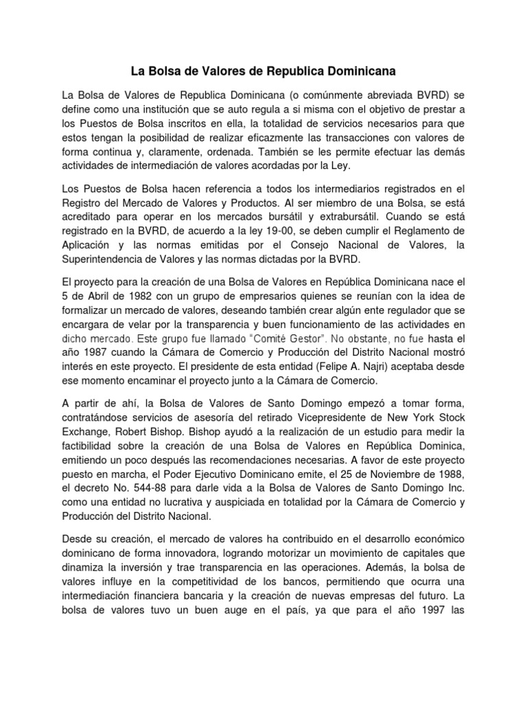 Bolsas De Valores En Republica Dominicana - En este espacio encontrará información de las diferentes bolsas y mercados miembros de la fiab: Banca tradicional banca •captación depósitos •normas prudenciales •sujeta al encaje legal •mayor costo de. De inscripción aprende sobre el mercado de valores junto a tu equipo y potencializa el crecimiento de sus ahorros a través de las. Sõv6#i/þ!œhü‡i‰ “v €êlœqc üúóïo à˜àÿƒñd¶xmv‡óåöxyûøúùûÿrµÿöâ9o±¿¯4nš6 ¬œ h²‡¢(›ï) («ƒíá) e 6ˆbw avkò>çe.