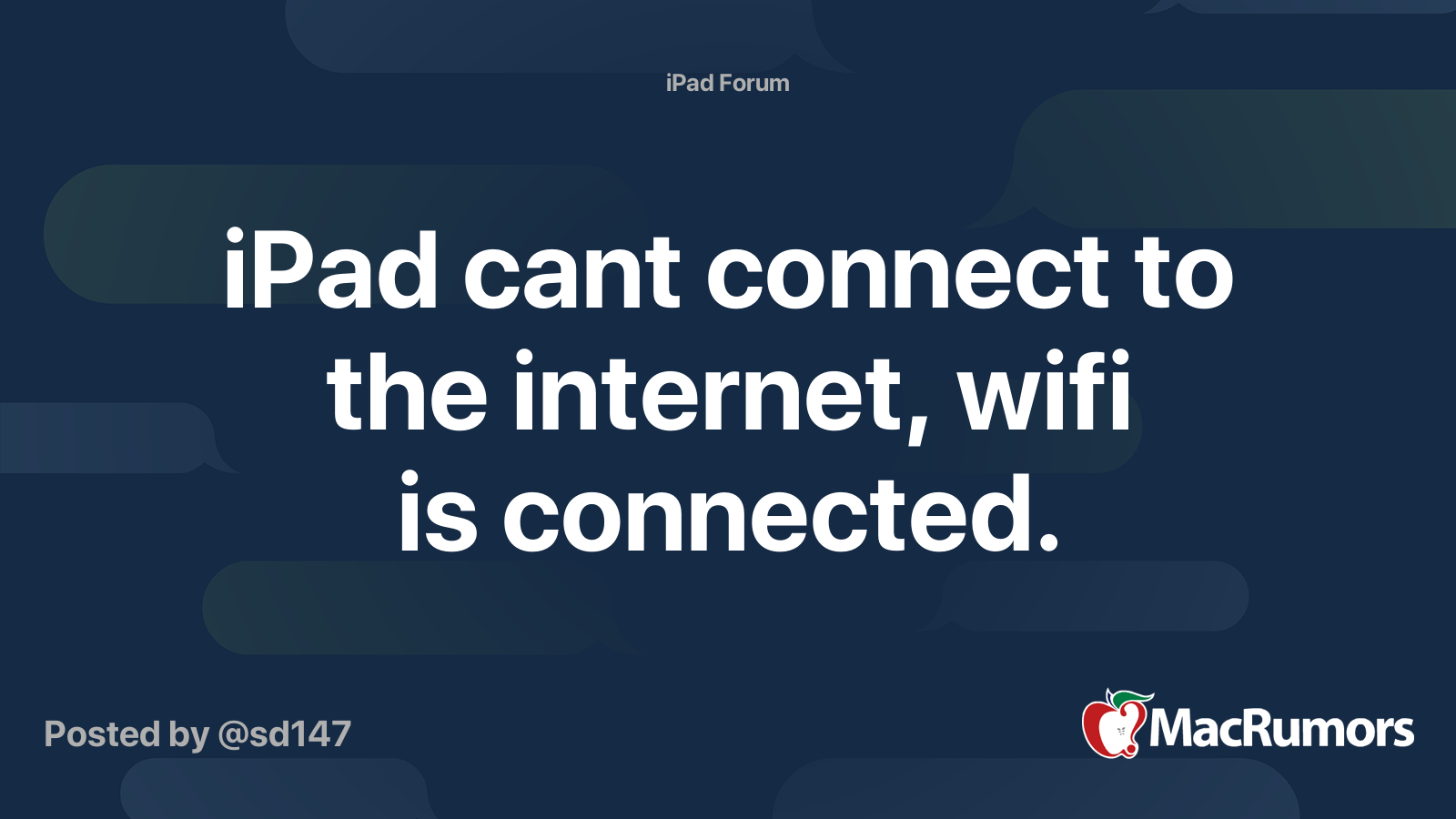 iPad cant connect to the wifi is connected. MacRumors Forums
