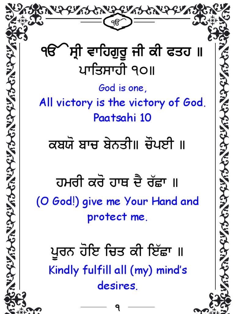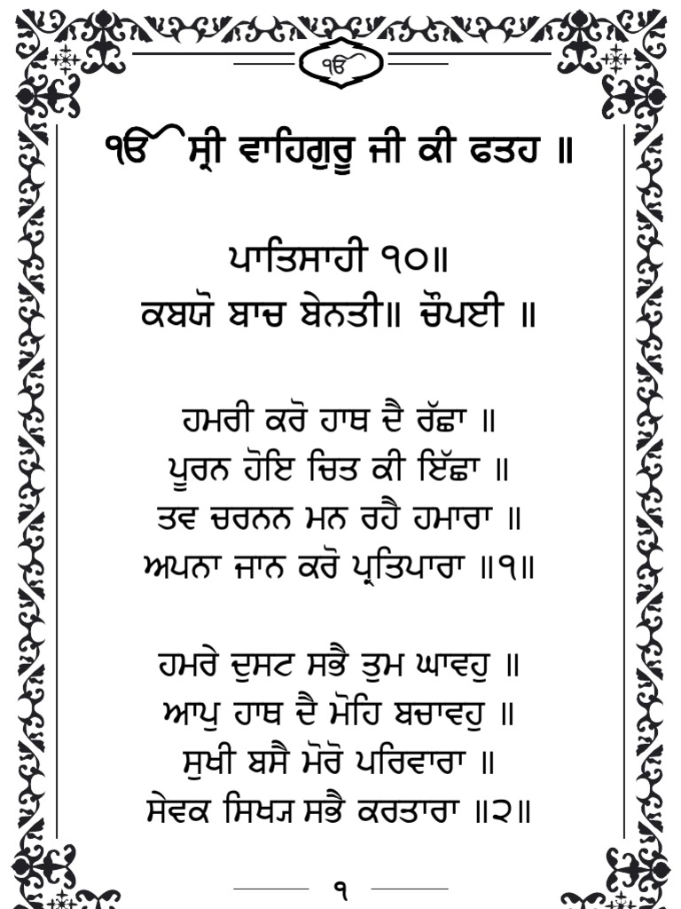 It contains 28 verses praising god and asking for. ਚੌਪਈ ਸਾਹਿਬ ਕਬਯੋ ਬਾਚ ਬੇਨਤੀ ॥ ਚੌਪਈ ॥ ਹwyc ਕyh ਹਾਥ ਦ yਛਾ ॥ seyਨ ਹਇ ਚਿਤ ਕ ਇਛਾ ॥ 1 downloaded from nitnempath.com website.