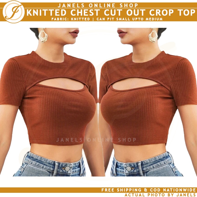 Cheska Chest Cut Out Knitted Crop Top Shopee Philippines
