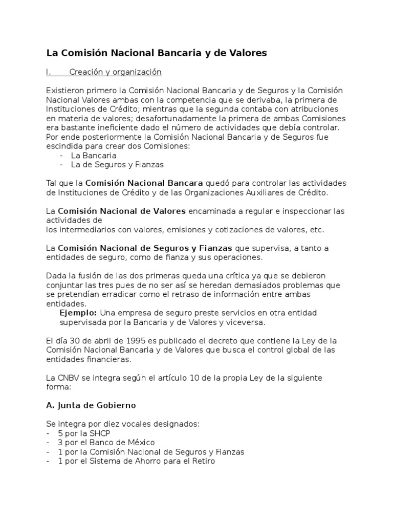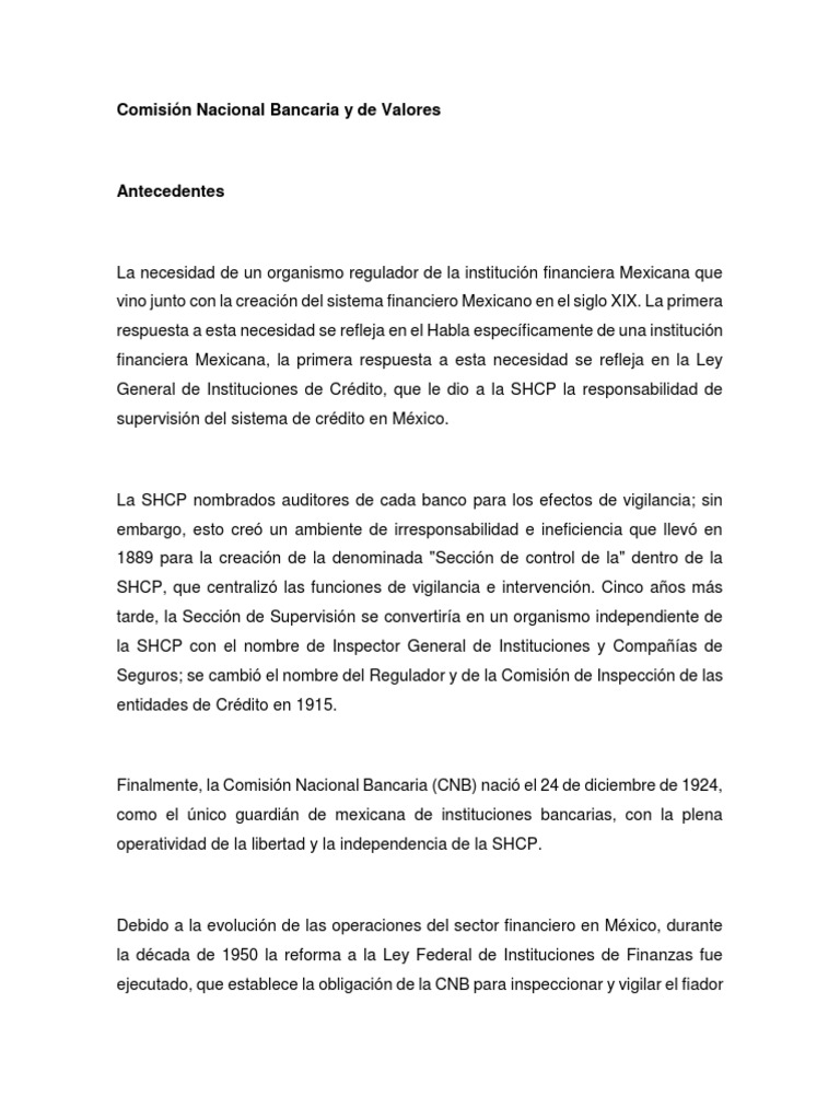 Comisión Nacional Bancaria y de Valores PDF Economias Gobierno