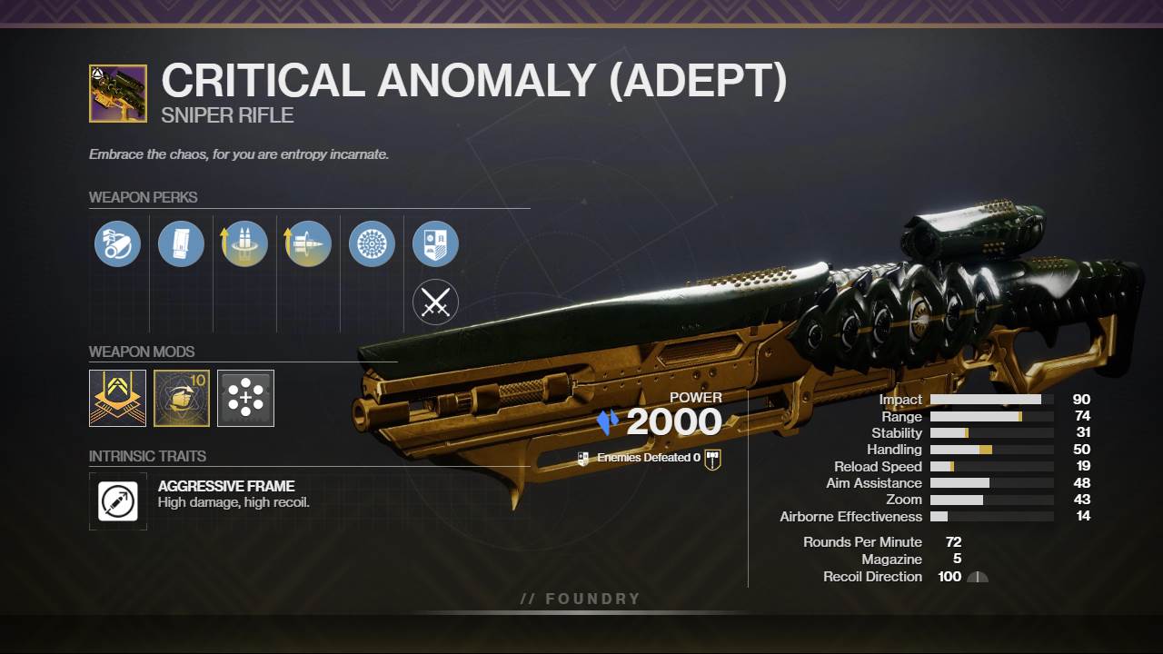 Destiny 2 Critical Anomaly God Rolls & How to get it