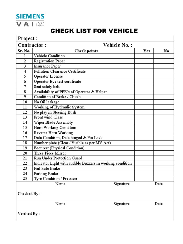 Daily Check List For Vehicle PDF