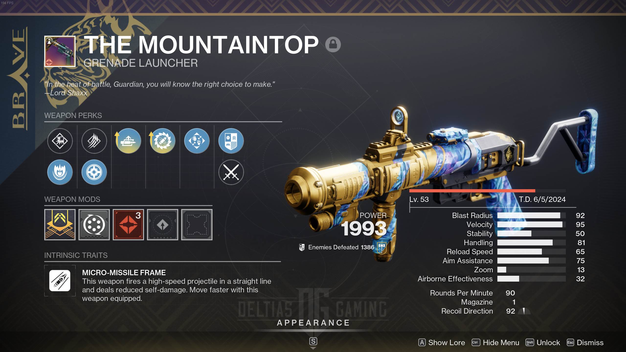 Destiny 2 The Mountaintop Grenade Launcher Deltia's Gaming