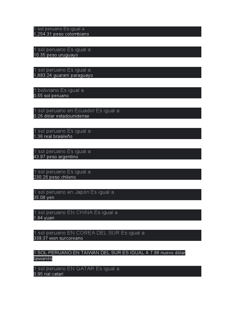 Valor de La Moneda en Peruana en Otros Paises PDF
