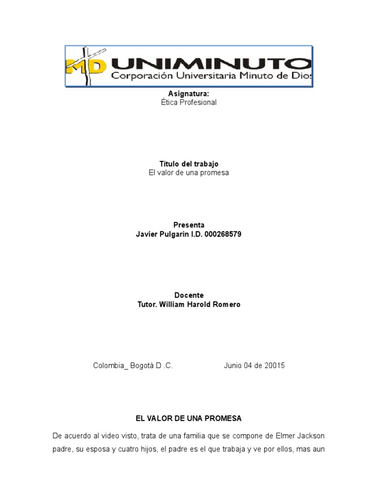 El Valor de Una Promesa PDF Trabajo Social Sicología