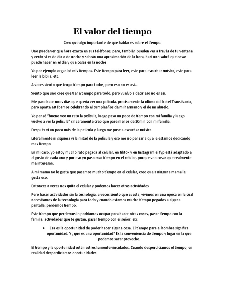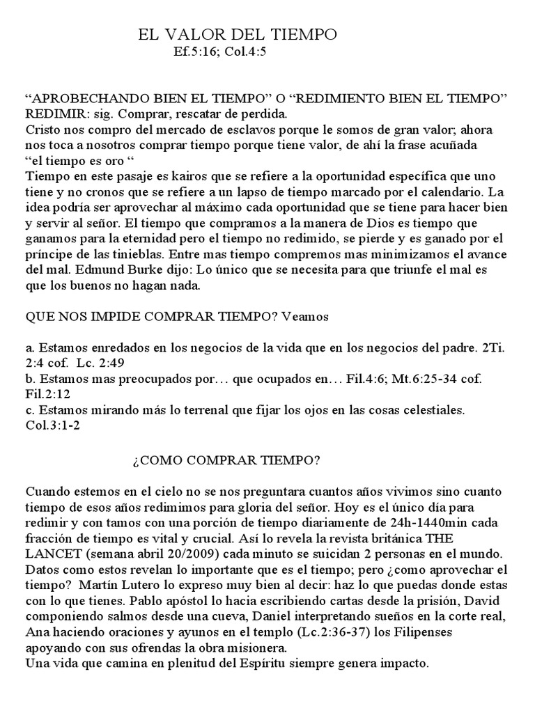 El Valor Del Tiempo En La Biblia