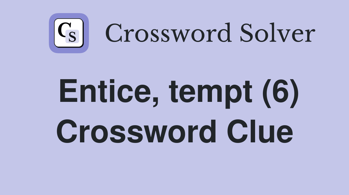 Find 27 solutions for the crossword clue entice with 4 to 10 letters, such as lure, tempt, seduce, and attract. The crossword solver finds answers to classic crosswords and cryptic. We identified 17 potential answers for this clue. We believe the most likely solution is tempt with 5 letters. Looking for a different length or letter.