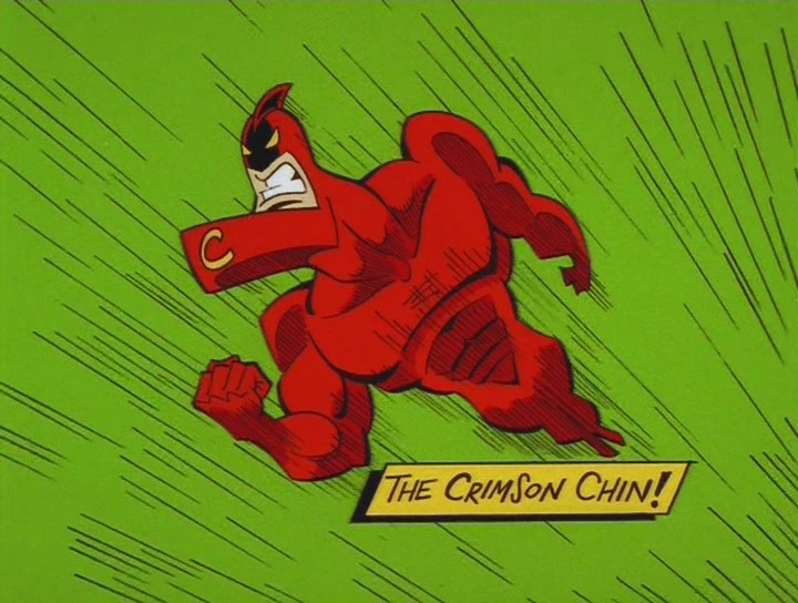 Alternate crimson chins have been shown, from 1936 all the way to 2000, with each different crimson chin reflecting the style of that era. The crimson chin is timmy turner's favorite superhero in the fairly oddparents, voiced by former late night talk show host jay leno.