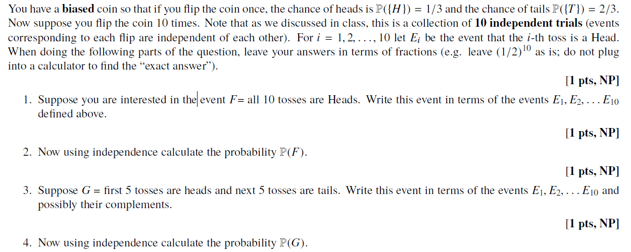 Solved If you flip a coin twice, is the event of having an