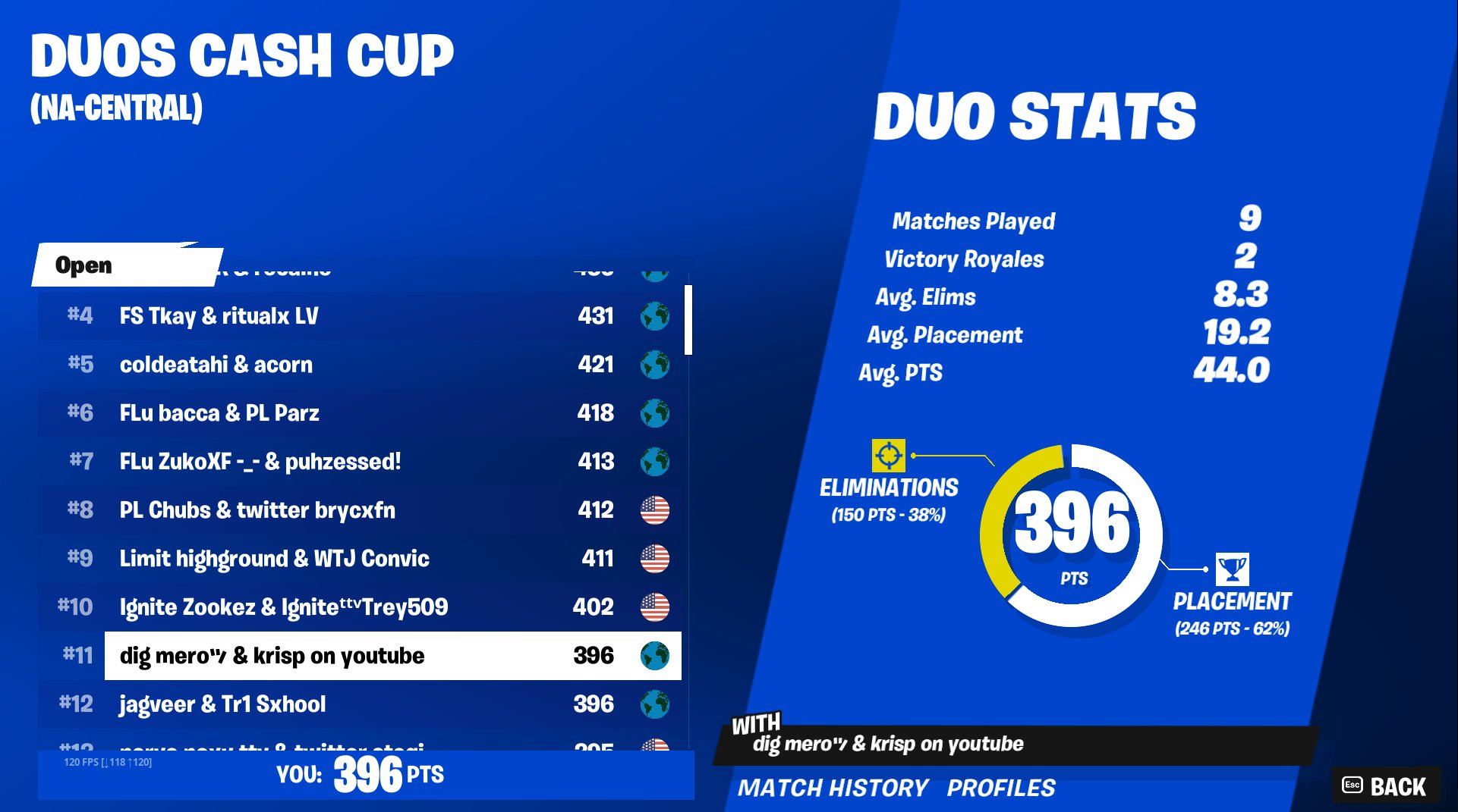 Fortnite Duos Cash Cup Leaderboard