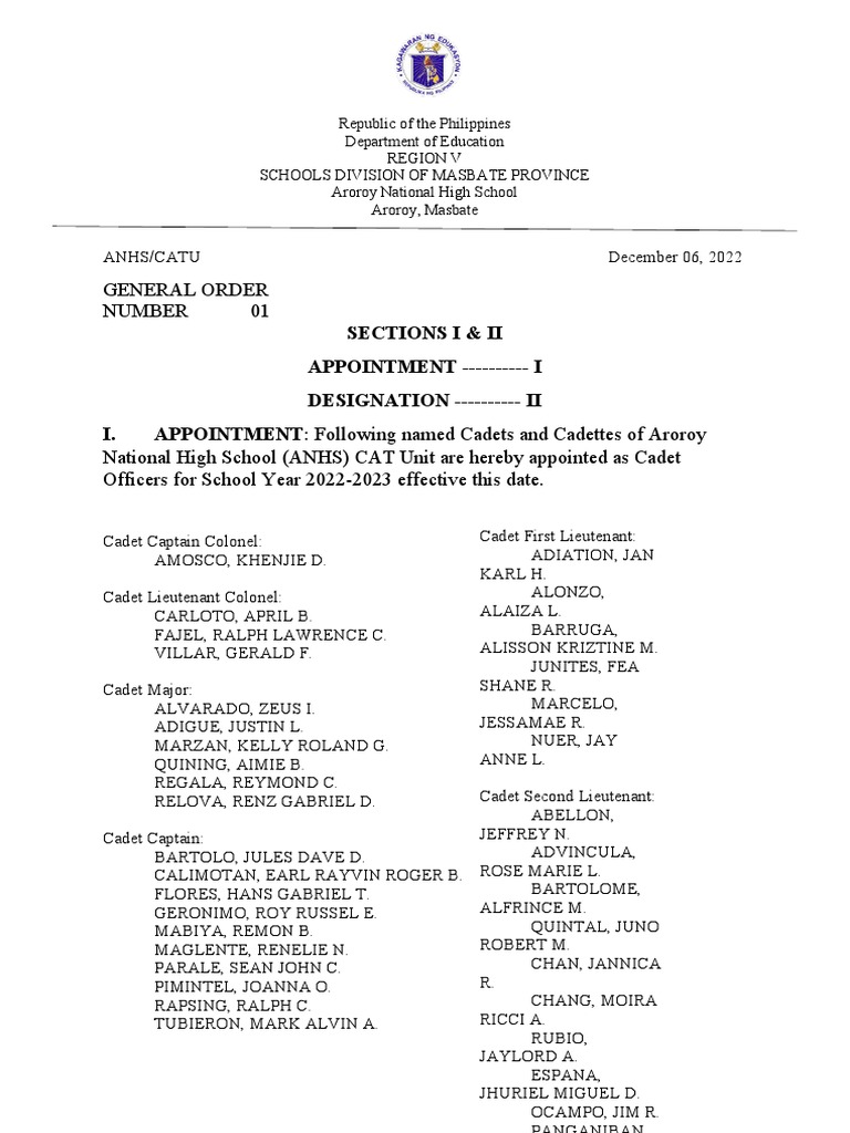 General Order 01 PDF Titles Military Units And Formations