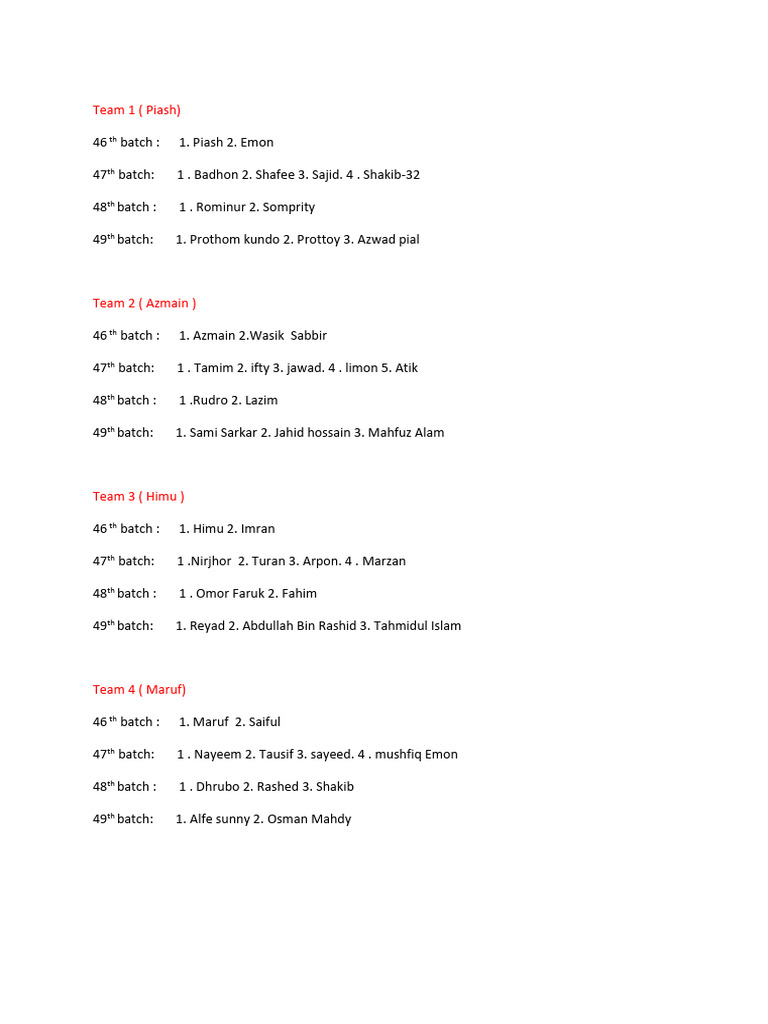 Team 1 Team 2 PDF