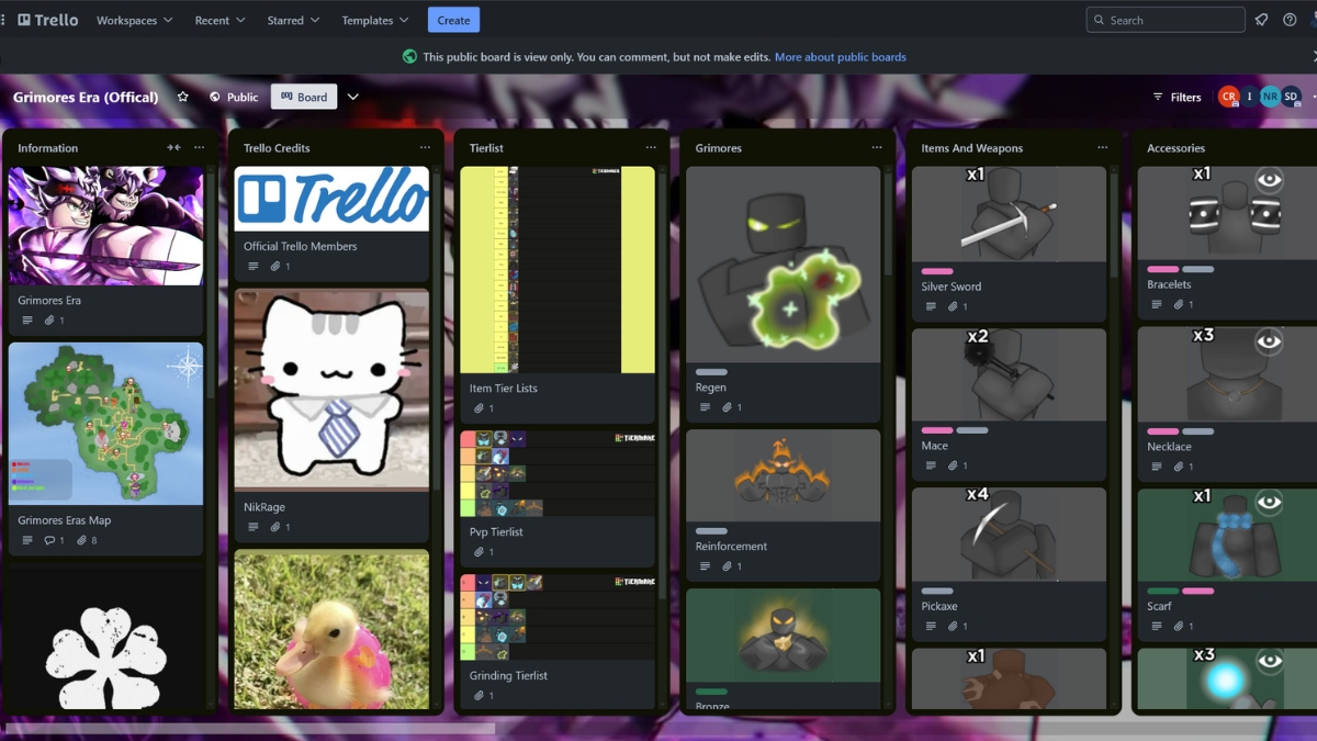 Grimoires Era Trello Link (August 2024) Twinfinite
