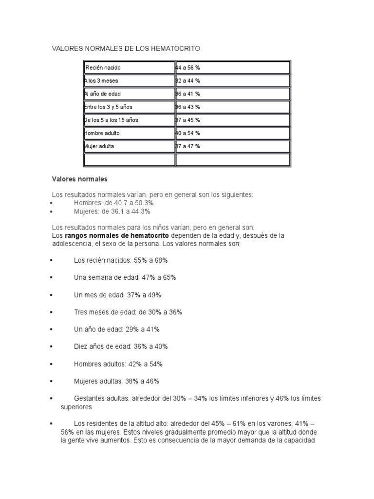 Hematocrito Valores Normales