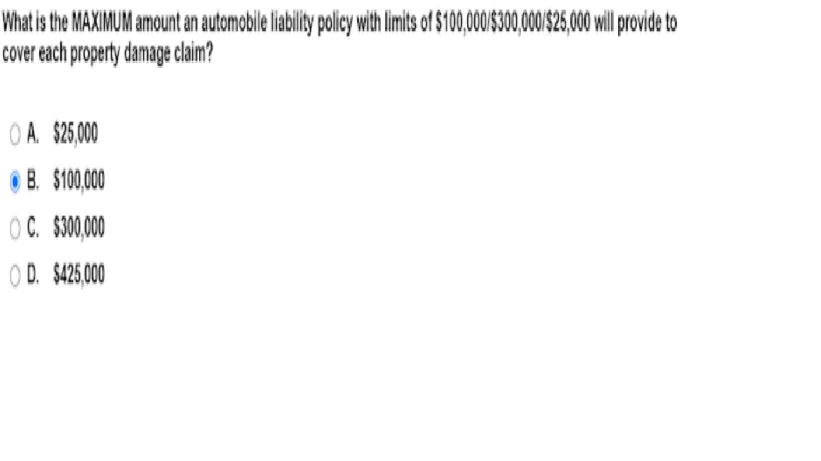 Solved cover each property dammage claim? A. 25,000 B.