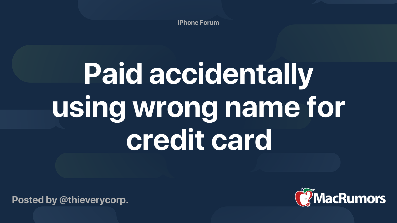 Paid accidentally using wrong name for credit card MacRumors Forums
