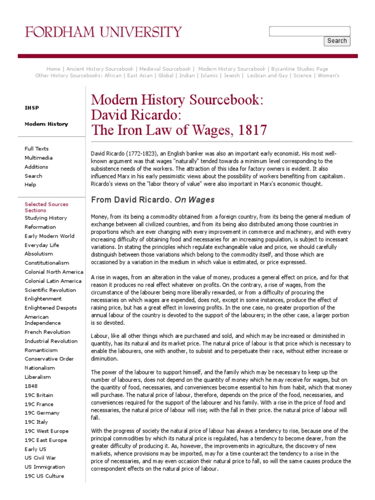 There is no particular moment when ricardo “released” the iron law of wages, as with an album or novel, but we know generally when. Early in the 19 th century, david ricardo enunciated the iron law of wages. A doctrine imputed by *marx to the german socialist ferdinand lassalle. Iron law of wages published on by oxford university press. The.
