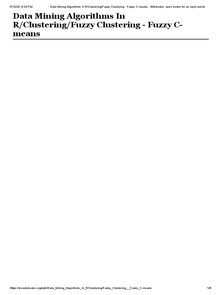 Data Mining Algorithms in R Clustering Fuzzy Clustering Fuzzy C