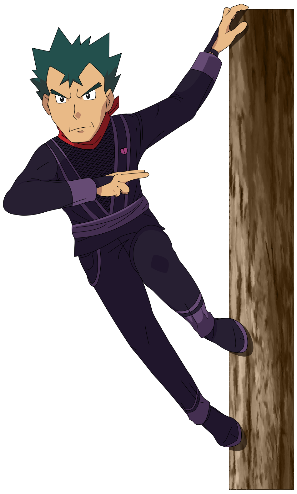 Koga is a ninja that lives on the outskirts of fuschia city in an old mansion. Koga's appearance is based on his game counterpart who had blue green short. As the gym leader, he set up a number of traps in the mansion that the trainers have to overcome if they wish to battle him. Evolved from rhyhorn in chapter:.