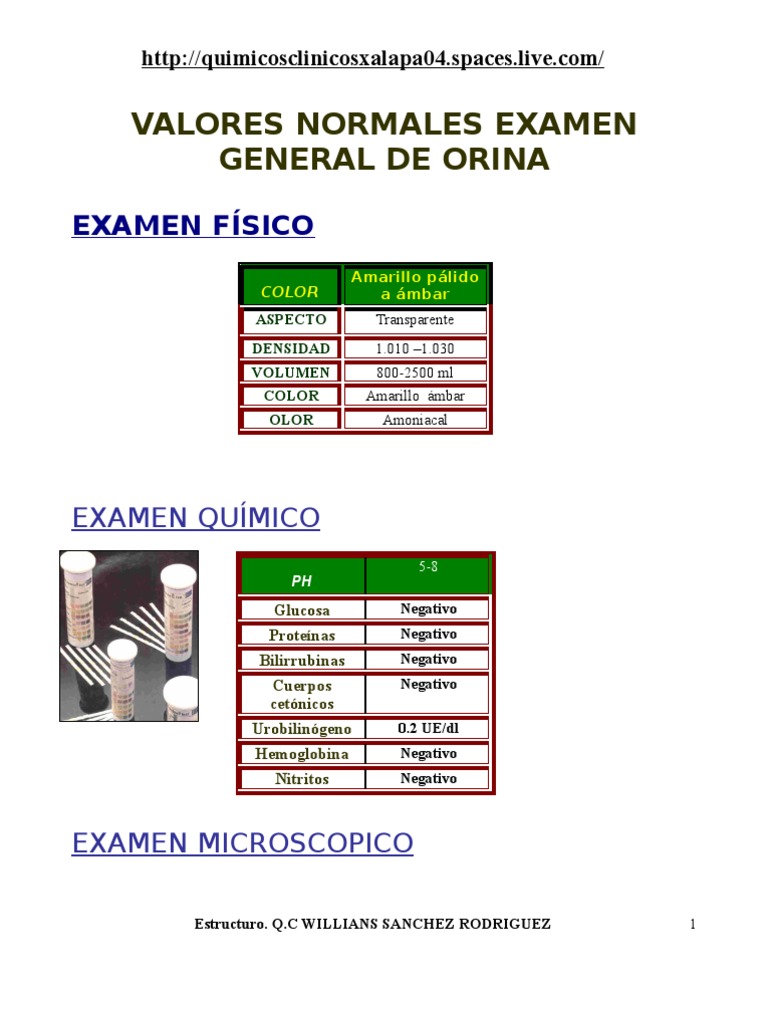 Valores Normales Examen General De Orina