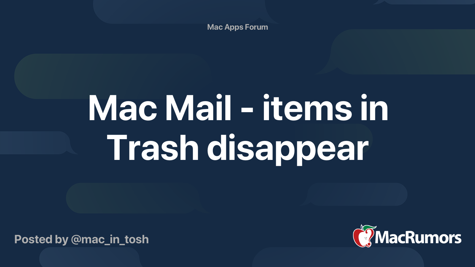 Mac Mail items in Trash disappear MacRumors Forums