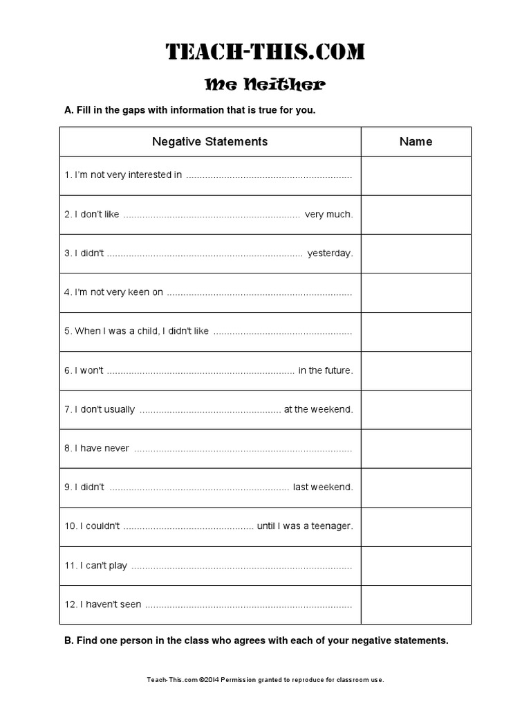 Me Neither Negative Statements Name PDF Sentence (Linguistics