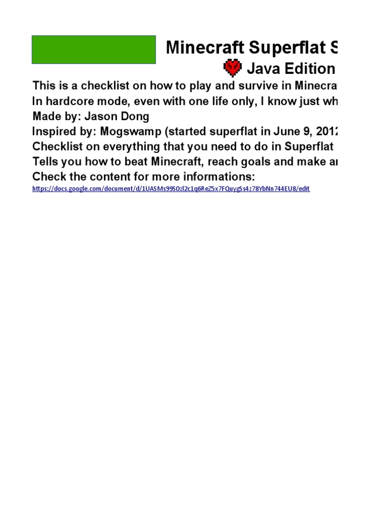 Minecraft Superflat Checklist PDF Minecraft