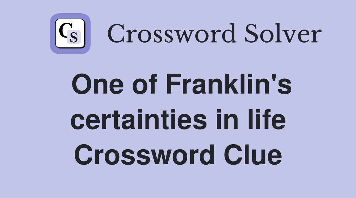 On this page you will find the one of franklin's certainties in life crossword clue answers and solutions. The clues reappear and could have a new meaning or answer you did not think of. We’ve solved a crossword clue called “one of franklin’s certainties in life” from the new york times mini crossword for you, see answer. One answer found.