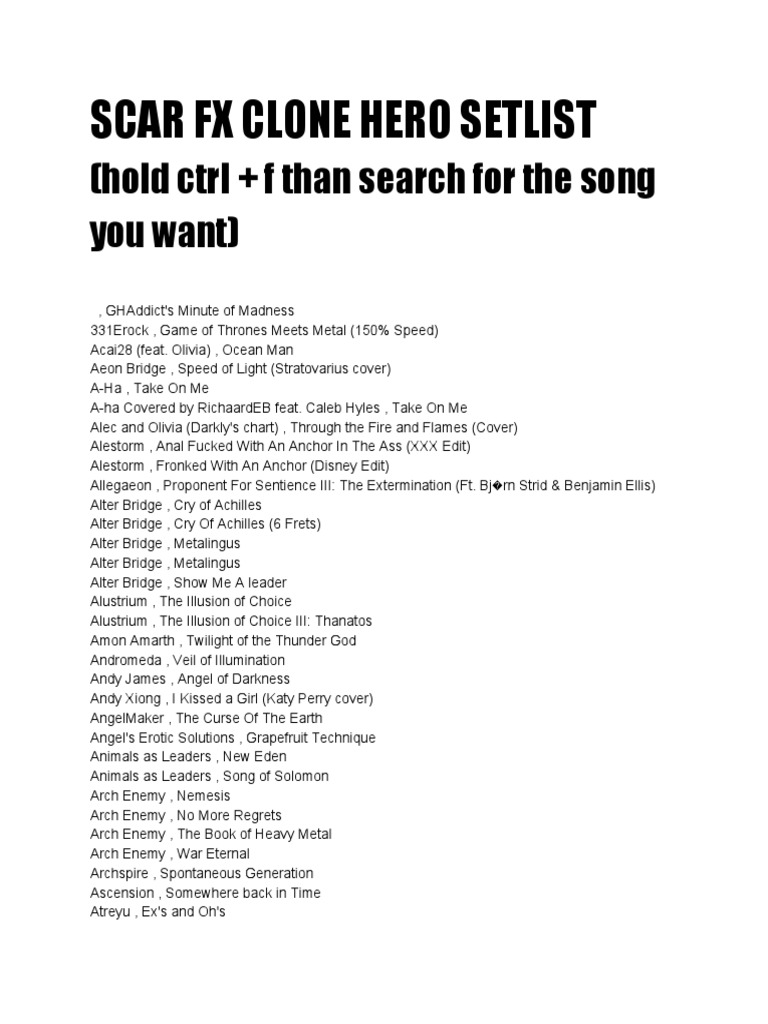 Clone Hero Songs Request List PDF Musicians Entertainment (General)