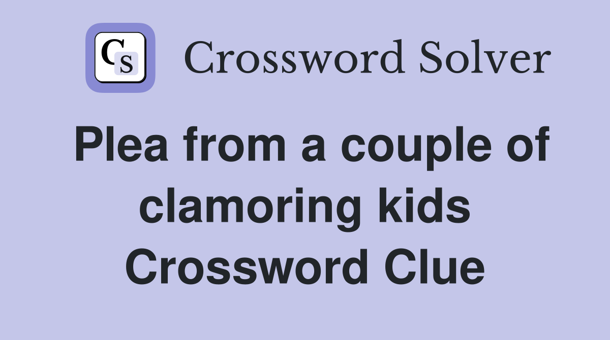 This clue was last seen. The most recent solution we have is. On this page you will find the plea from a couple of clamoring kids crossword clue answers and solutions. Here are the possible solutions for plea from a couple of clamoring kids clue. This page contains the answer we have prepared for the “plea from a couple of.