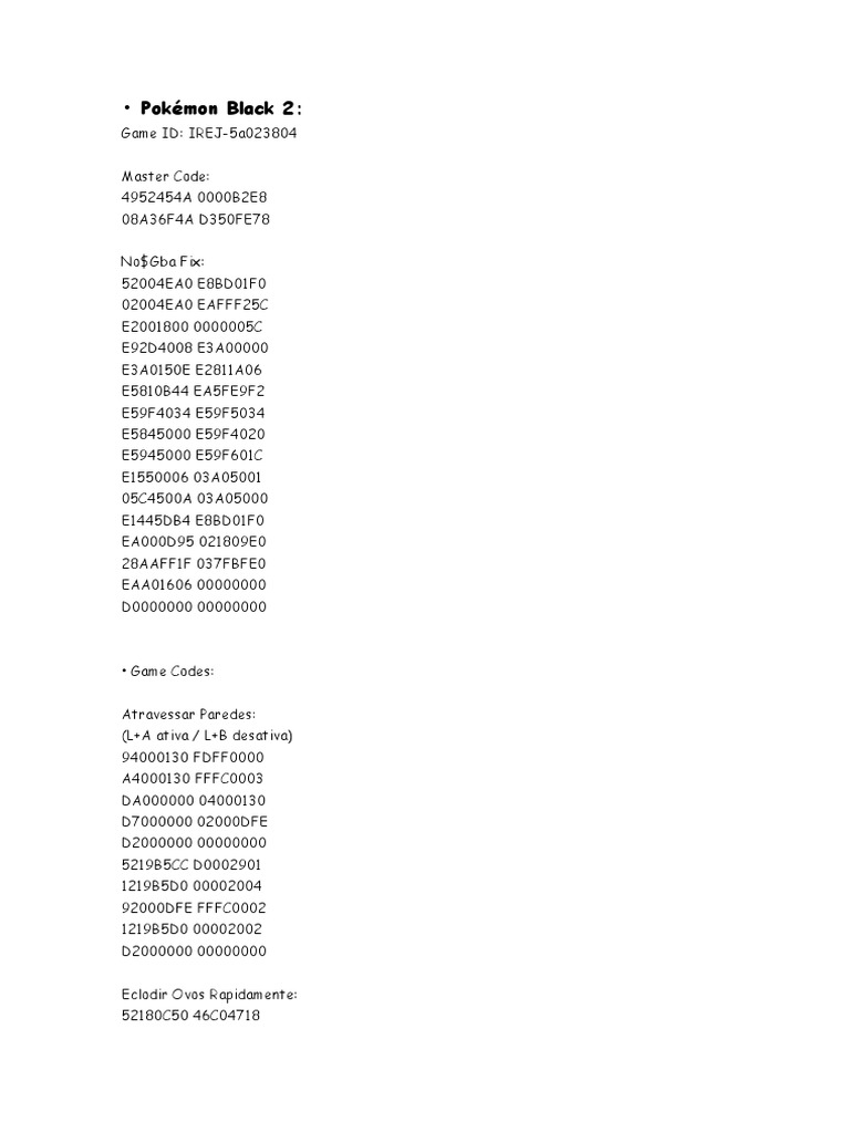 Pokemon Black 2 Cheat Code PDF Fictional Life Forms Nintendo