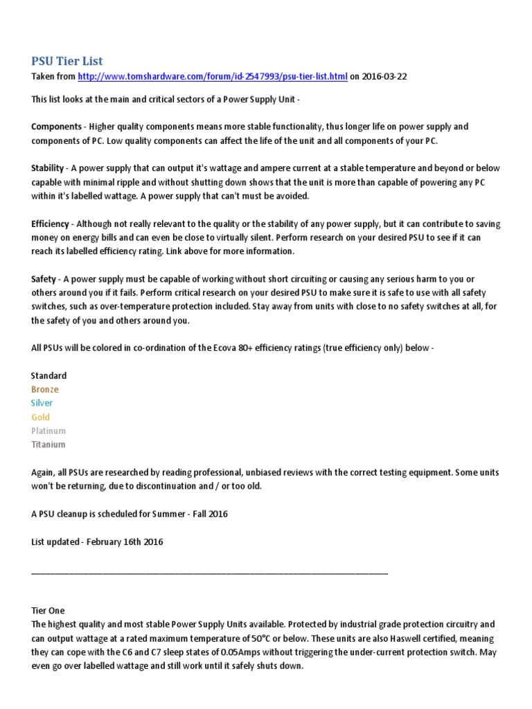 PSU Tier List Power Supply Electrical Engineering