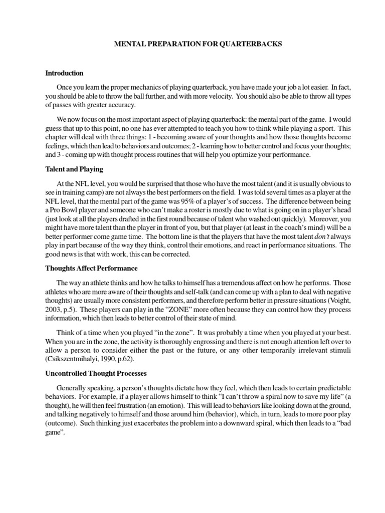 QB Mental Preparation PDF Attention Quarterback