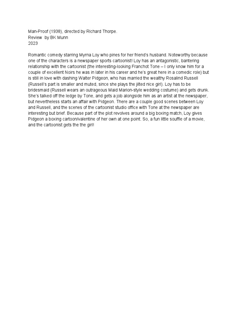 Film Review ManProof (1938), Directed by Richard Thorpe PDF