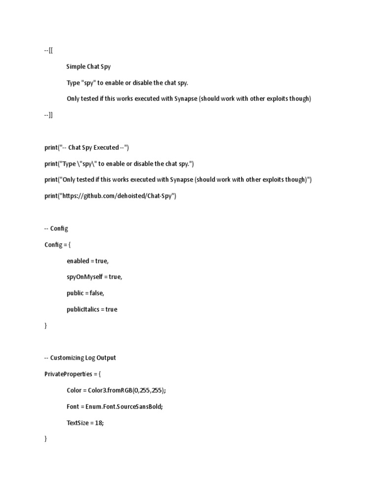 Roblox Chat Spy Script PDF Computing Computer Science