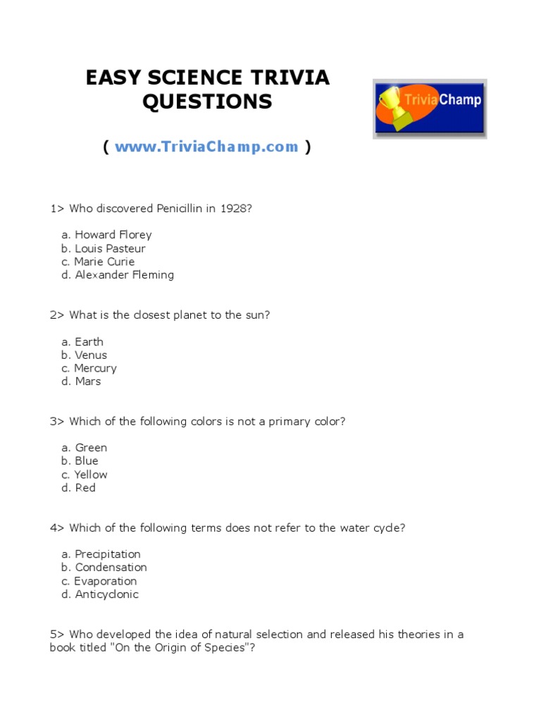 Delve into the realms of chemistry, physics, biology, and more as we explore fascinating questions and unveil concise answers. How much do you know about the body, space, and nature? Perfect for kids and adults alike. These easy science trivia questions and answers are perfect for testing what they know and expanding their. From the mysteries of the universe to.